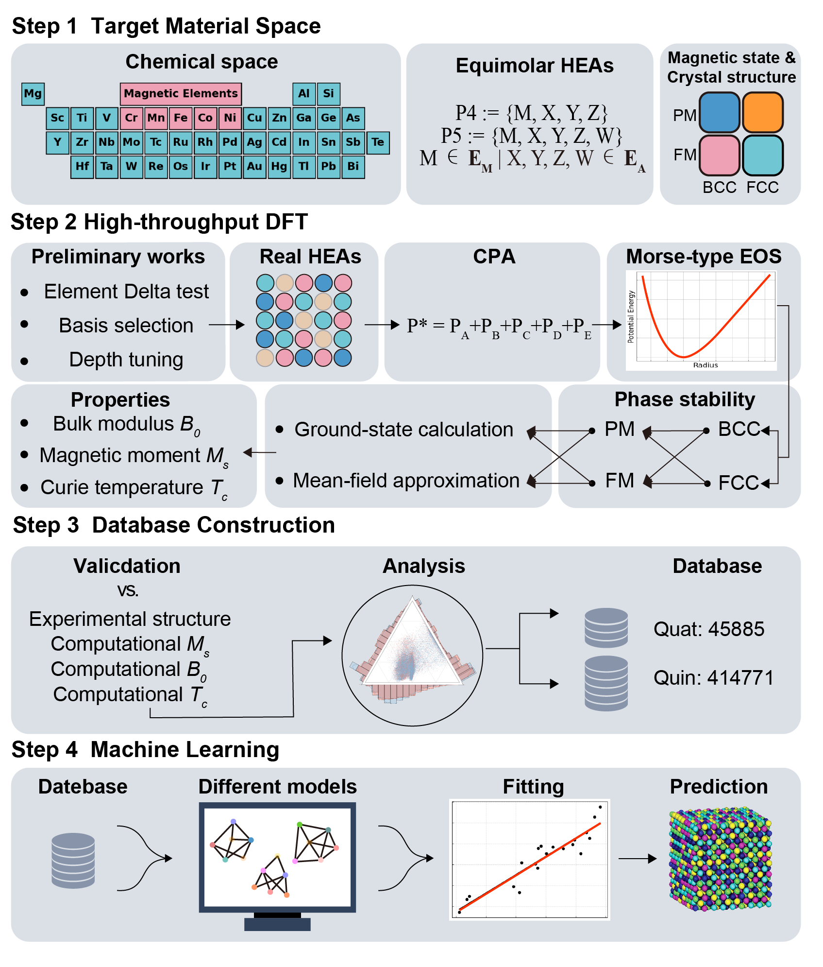 Figure 1: Workflow for HTP exploration and HEA property prediction